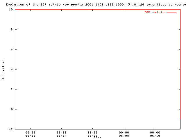 Figure 23: Evolution of the IGP metric for prefix 2001:1458:e100:1000::5:10/126 advertised by router