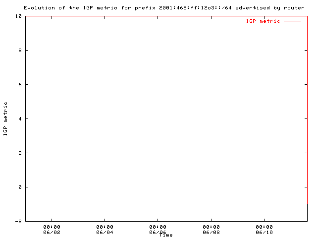 Figure 25: Evolution of the IGP metric for prefix 2001:468:ff:12c3::/64 advertised by router