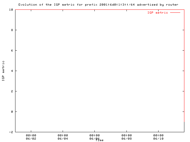 Figure 28: Evolution of the IGP metric for prefix 2001:6d0:1:3::/64 advertised by router
