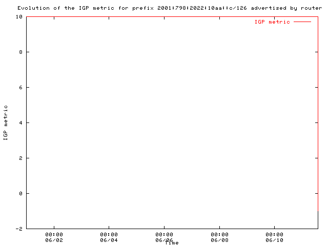 Figure 22: Evolution of the IGP metric for prefix 2001:798:2022:10aa::c/126 advertised by router