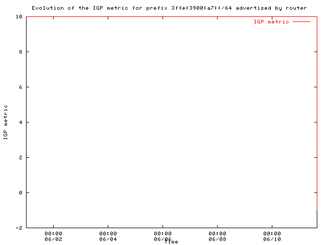 Figure 20: Evolution of the IGP metric for prefix 3ffe:3900:a7::/64 advertised by router