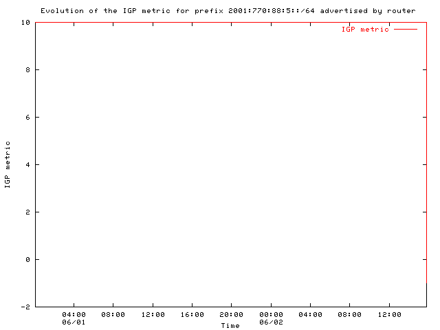 Figure 53: Evolution of the IGP metric for prefix 2001:770:88:5::/64 advertised by router
